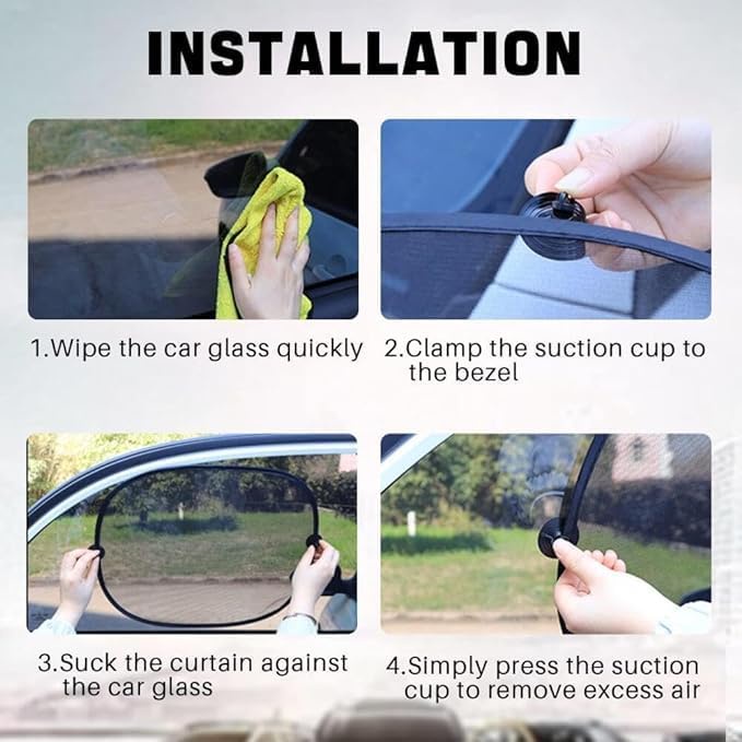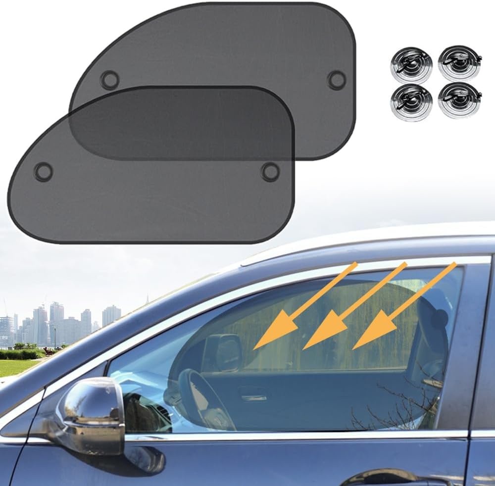 طقم ستائر 2 قطعة حاجبة من الشمس لزجاج السيارة الجانبي قابل للسحب، ستائر مظلة من الشمس مناسبة لمعظم السيارات واقية من الاشعة فوق البنفسجية