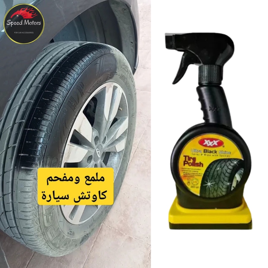 ملمع ومفحم كاوتش اطارات السيارات ، مع اسنفجة تلميع ، منتج عملى ومتميز يحافظ علي عمر الاطارات